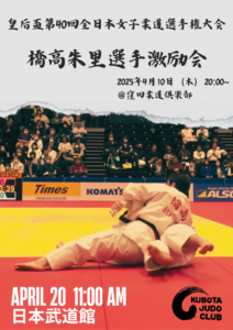 2025年4月10日、窪田柔道倶楽部柔道場にて、橋高朱里選手の皇后盃激励会を行いました。 激励会前には稽古にも参加していただき、投込を披露していただきました!   橋高選手は窪田柔道倶楽部のOGであり、高校カテ...